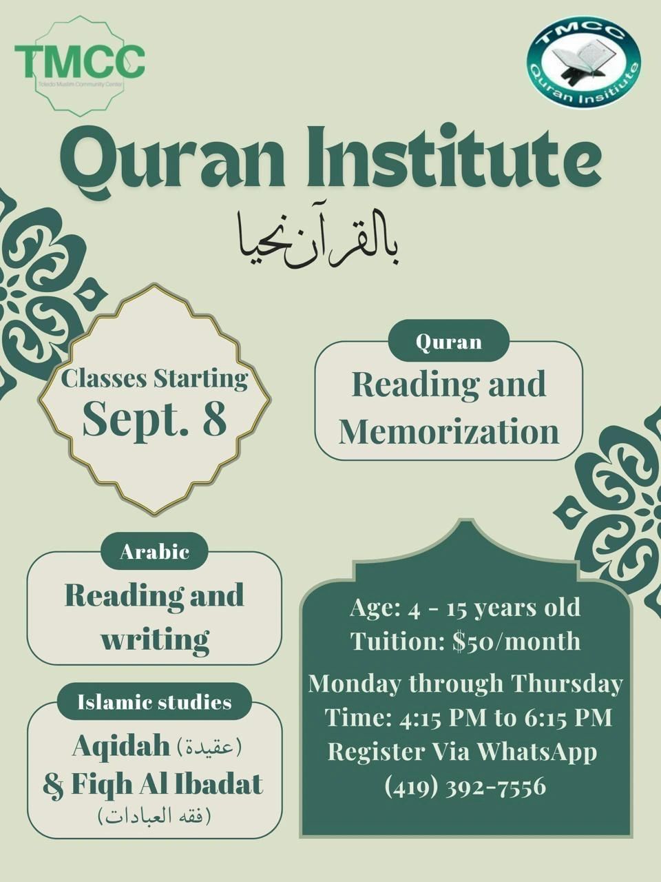 Quran, Arabic Islamic studies, and Activities